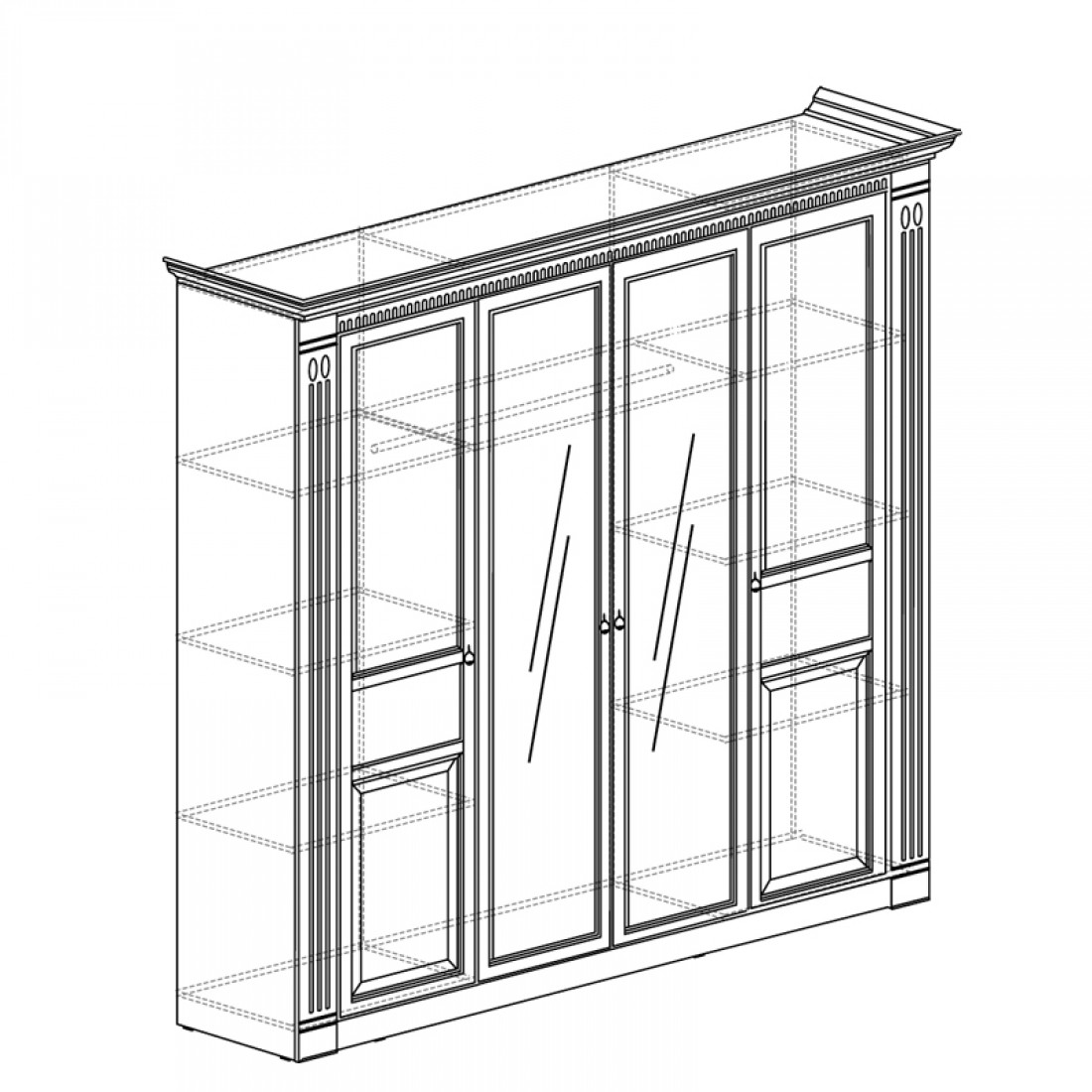 Фасады: МДФ, декор – дуб оксфорд серый, патина, зеркало с фацетом