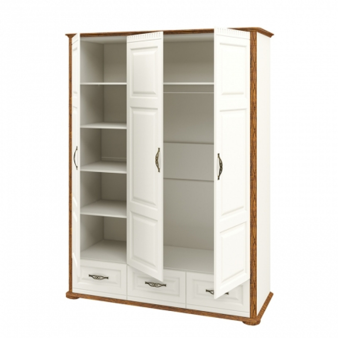 Роскошный трехстворчатый шкаф для одежды и белья МН-126-03 в спальню новой серии Марсель (Мебель-Неман) выполнен в светлом кремовом оттенке в комбинации с цветом "дуб кантри", является настоящим подарком производителя. Купить шкаф можно для комплекта полного спального гарнитура Марсель с другими элементами серии или отдельно.