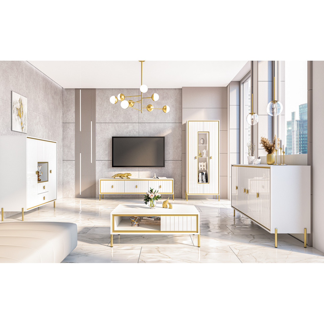 Элегантная тумба под телевизор МН-042-05 для гостиной из новой коллекции Люксор от Мебель-Неман.