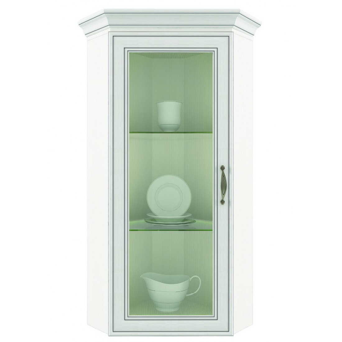 Угловой шкаф-витрина для посуды Тиффани 1VU крем вудлайн
